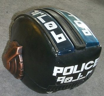 Space Precinct Spacecop chin appliance made of foam with accompanying photo traded with a collector from the UK