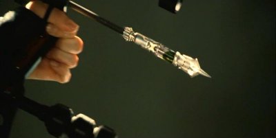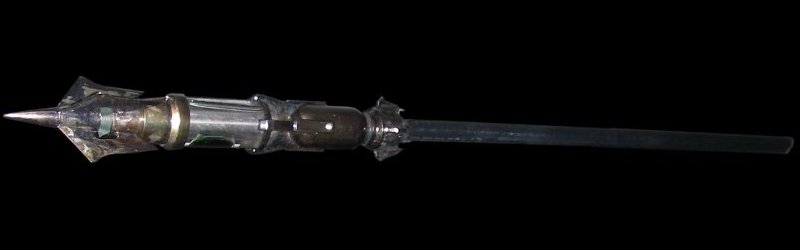 is made of metal with a carbon shaft. The glas vial is filled with a liquid.